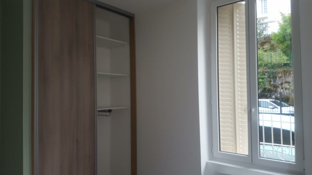 Au calme, proche du centre ville, T2 au RDC d’une maison de ville, avec vue dégagée, comprenant une pièce de vie avec cuisine aménagée et équipée (plaque de cuisson vitrocéramique, une hotte, un four), une chambre avec placard, une salle d’eau, un Wc séparé. Une cave + un jardin privatif. En sus pour 110€/mois un […]